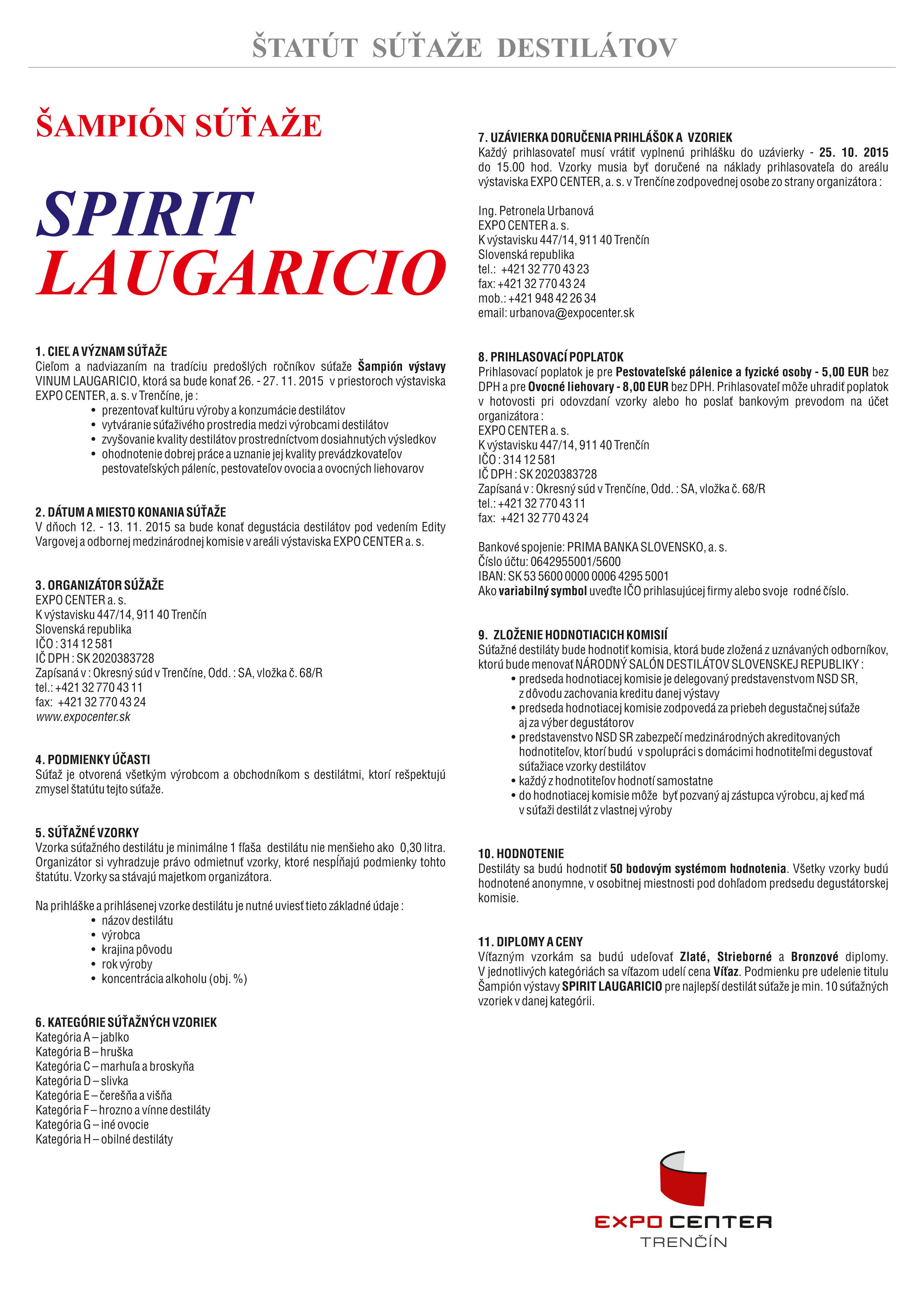 SÚŤAŽ SPIRIT LAUGARICIO 2015 - destiláty