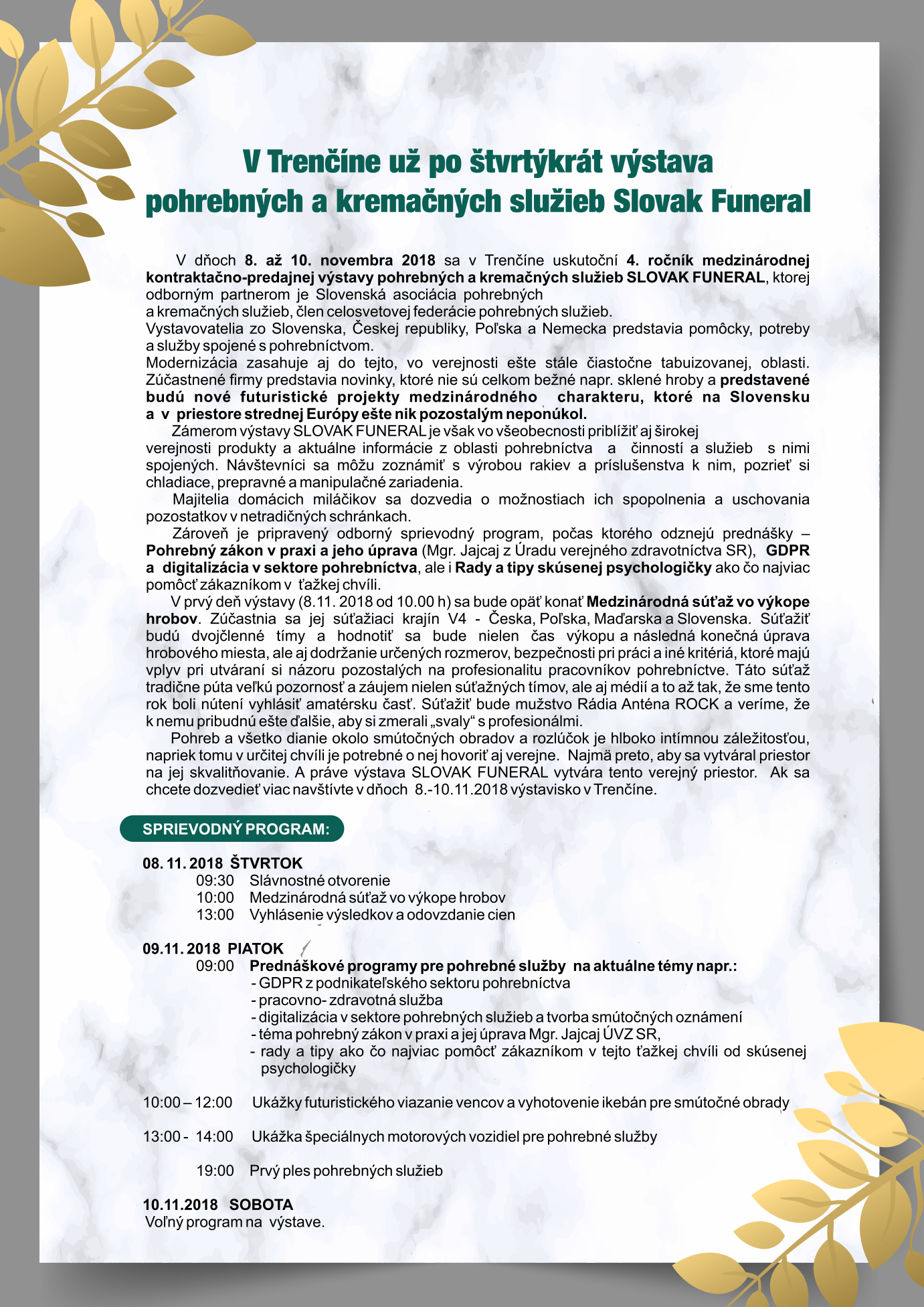 4. ročník medzinárodnej kontraktačno-predajnej výstavy pohrebných a kremačných služieb